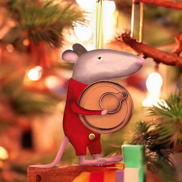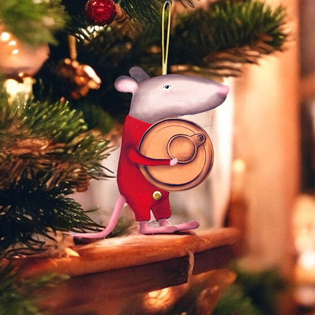 Il topino, in pigiama rosso, porta con sé una scatoletta di tonno e ha giunture mobili che permettono di muovere le gambe.